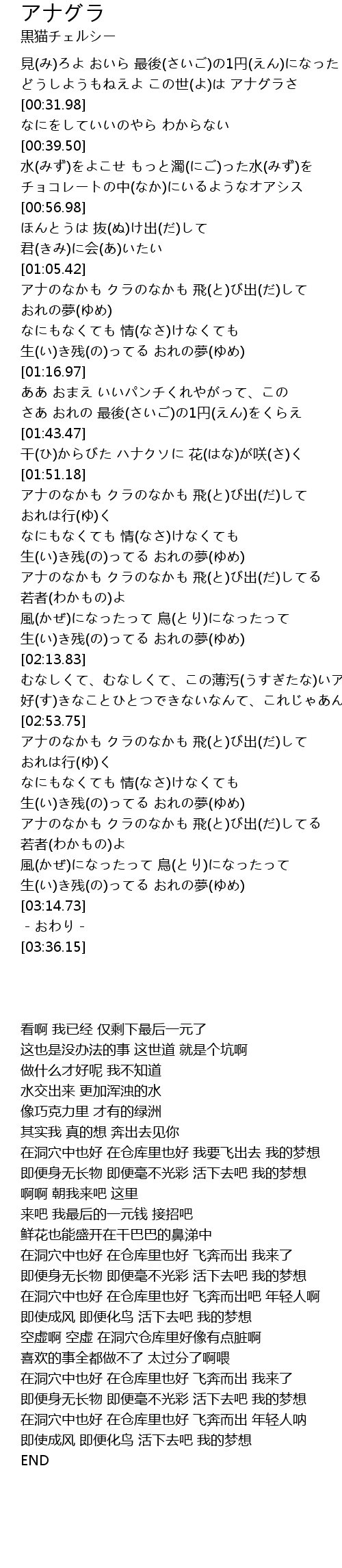 | [00:26.42] | どうしようもねえよ この世(よ)は アナグラさ |