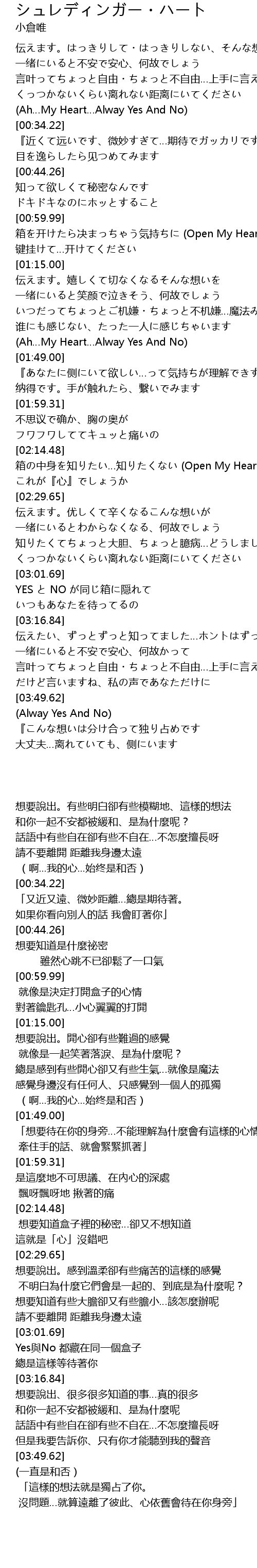 | [03:03.52] | Yes與No 都藏在同一個盒子 |