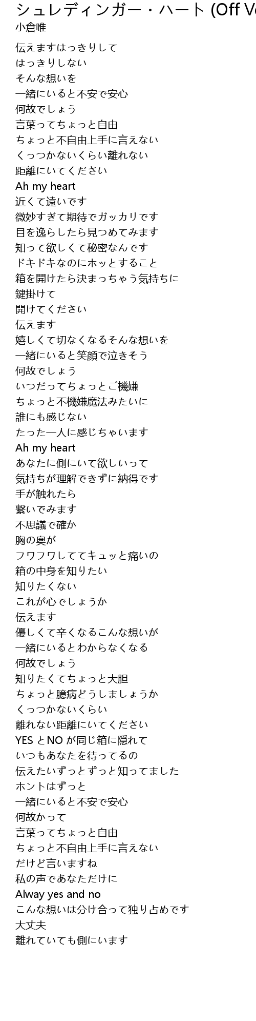 | 歌曲 | シュレディンガー・ハート (Off Vocal) |