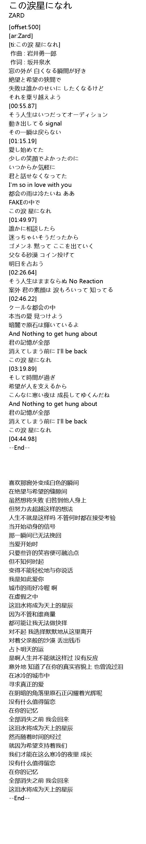 | [04:39.14] | この涙 星になれ |