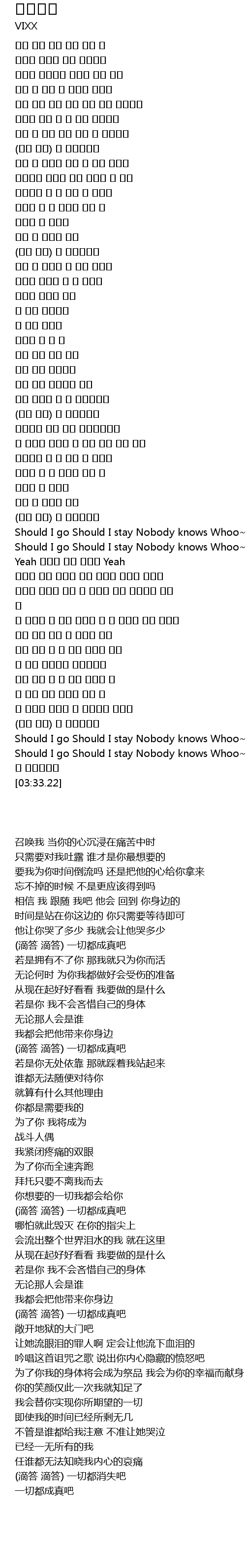 | [03:18.41] | Should I go Should I stay Nobody knows Whoo~ |