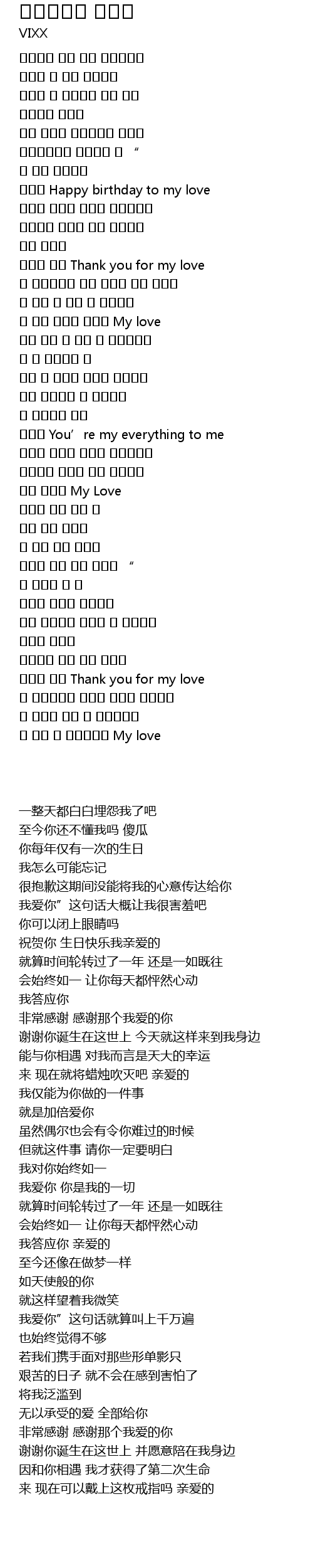 | [00:55.32] | 축하해 Happy birthday to my love |