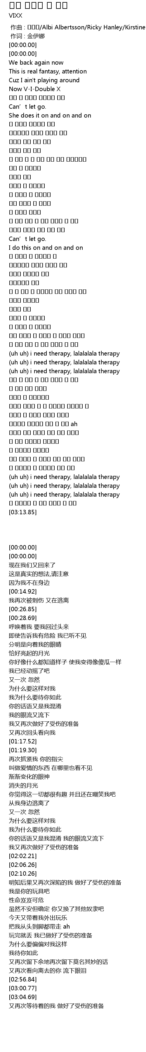 | [03:00.77] | (uh uh) i need therapy, lalalalala therapy |