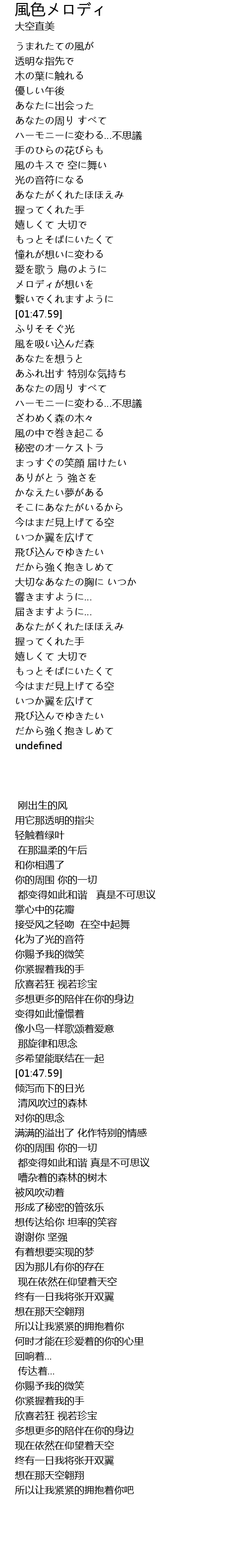 | [00:45.57] | ハーモニーに変わる…不思議 |