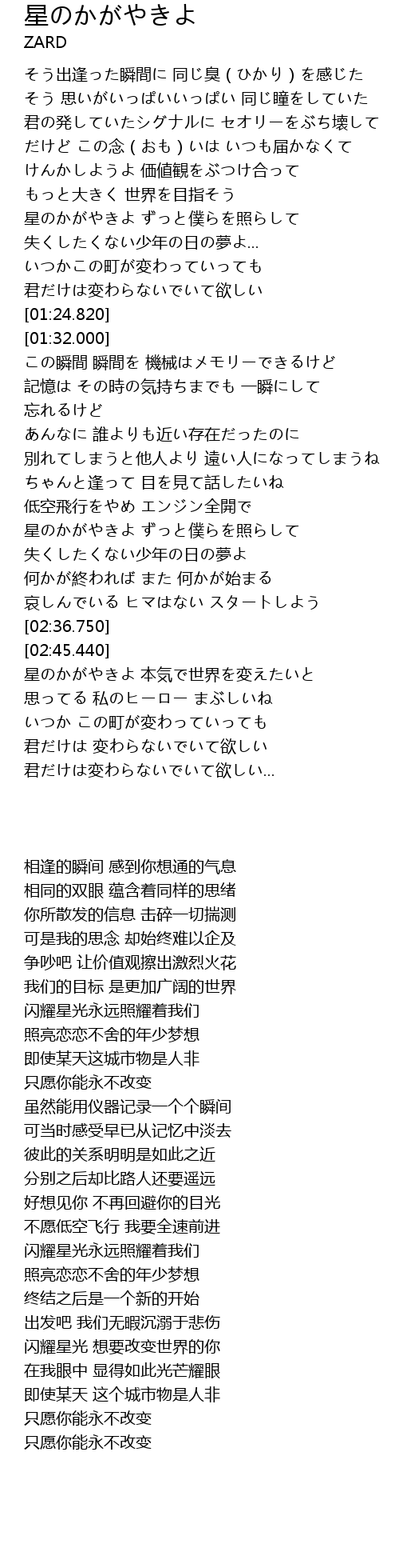 | [02:10.310] | 星のかがやきよ ずっと僕らを照らして |