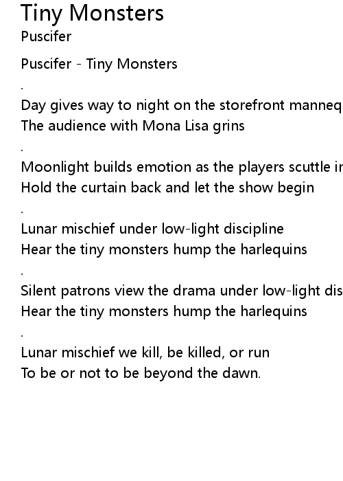 Hear the tiny monsters hump the harlequins |