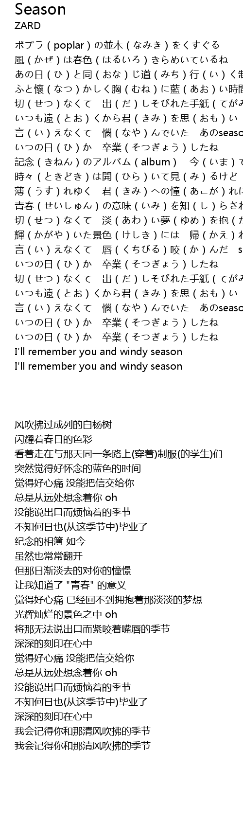 | [03:11.12] | 言(い)えなくて 惱(なや)んでいた あのseason |