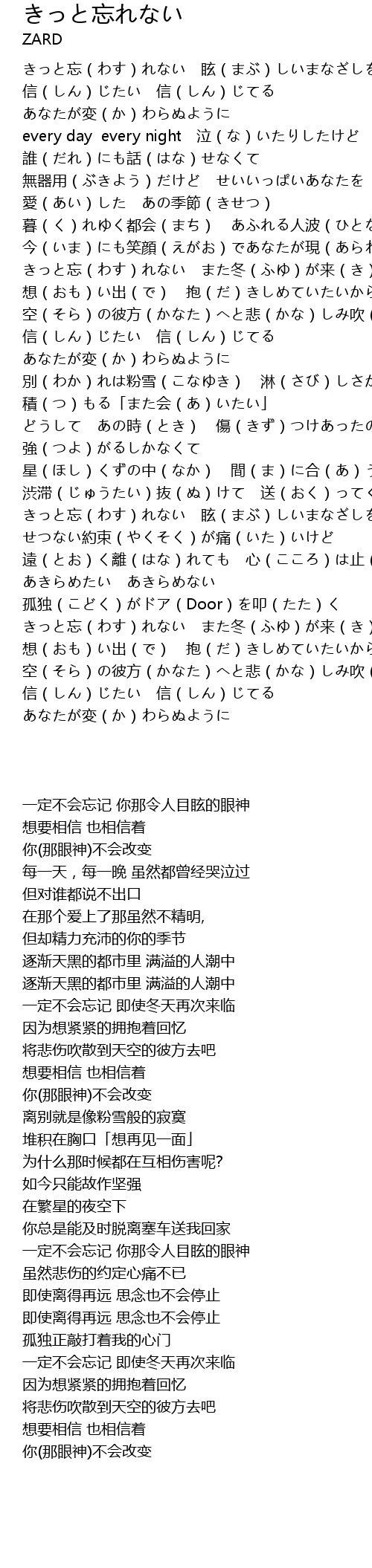 | [00:00.00] | きっと忘(わす)れない 眩(まぶ)しいまなざしを |