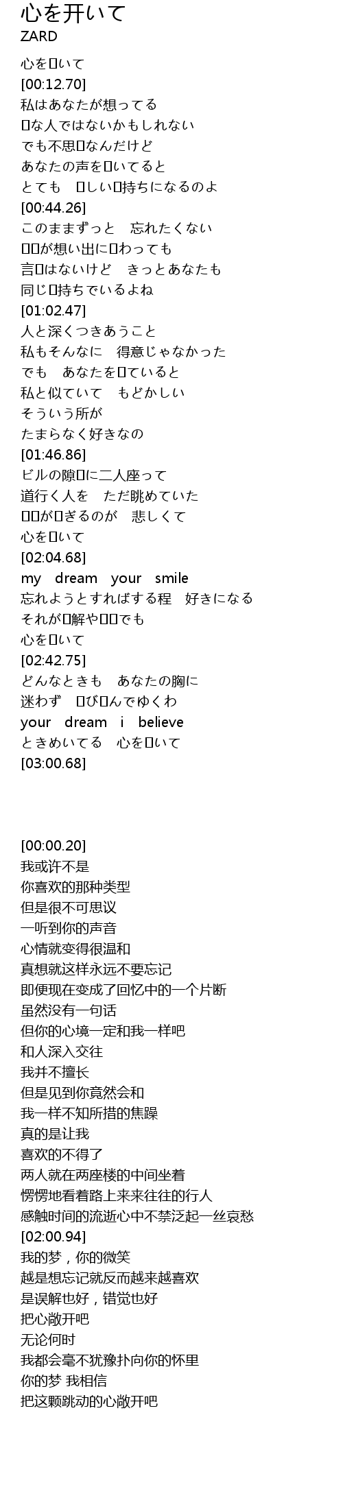 | [00:00.20] | 心を�いて |