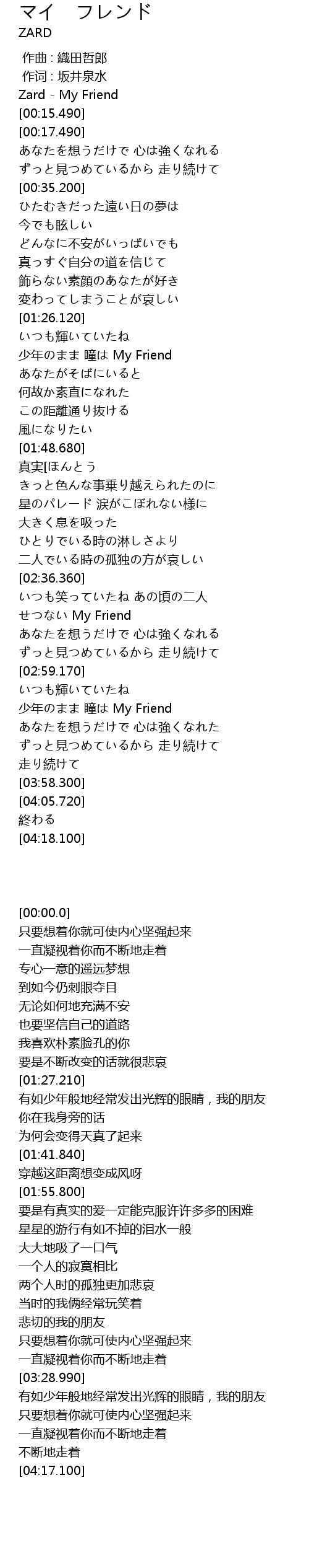 | [03:32.490] | 少年のまま 瞳は My Friend |