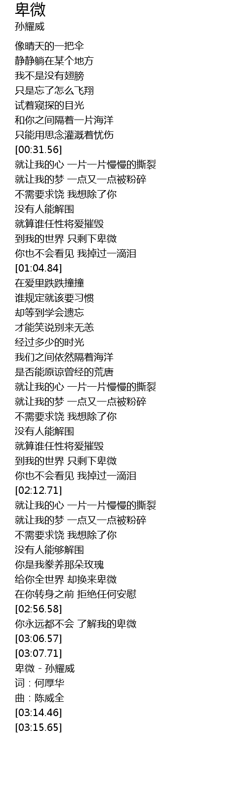 | [02:00.82] | 到我的世界 只剩下卑微 |