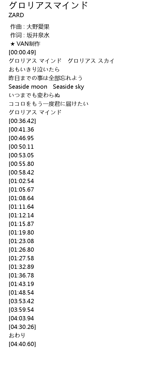 | [00:01.67] | グロリアス マインド グロリアス スカイ |