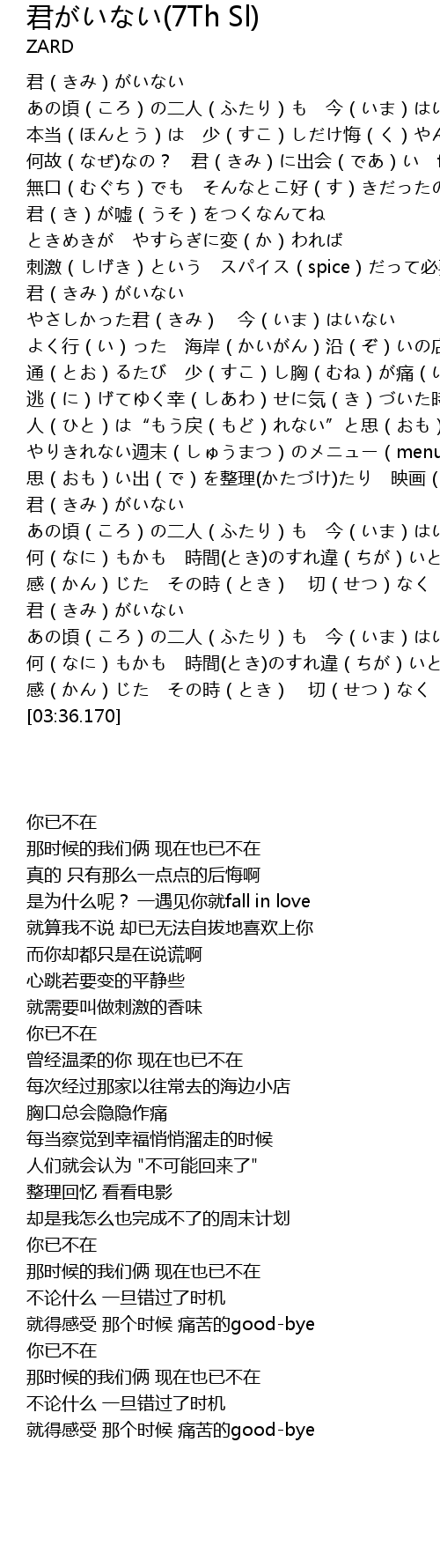 | [01:27.150] | やさしかった君(きみ) 今(いま)はいない |