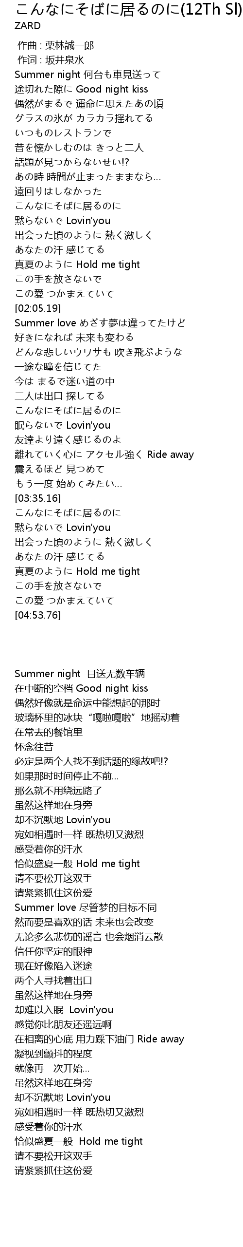 | 歌曲 | こんなにそばに居るのに(12Th Sl) |