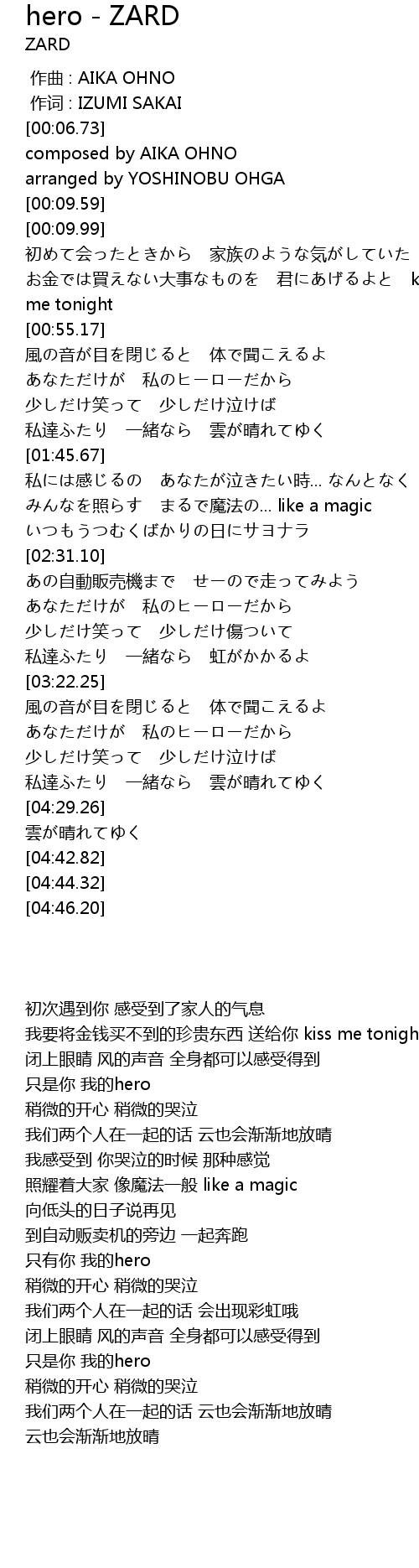 | 歌曲 | hero - ZARD |