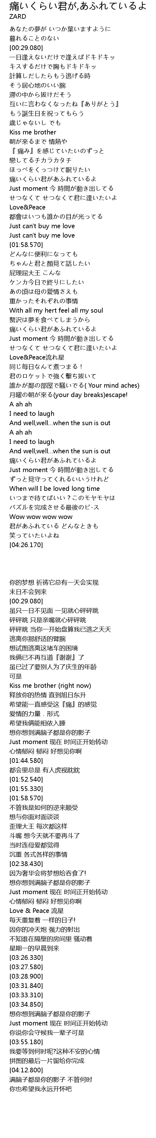 | [03:37.860] | 痛いくらい君があふれているよ |