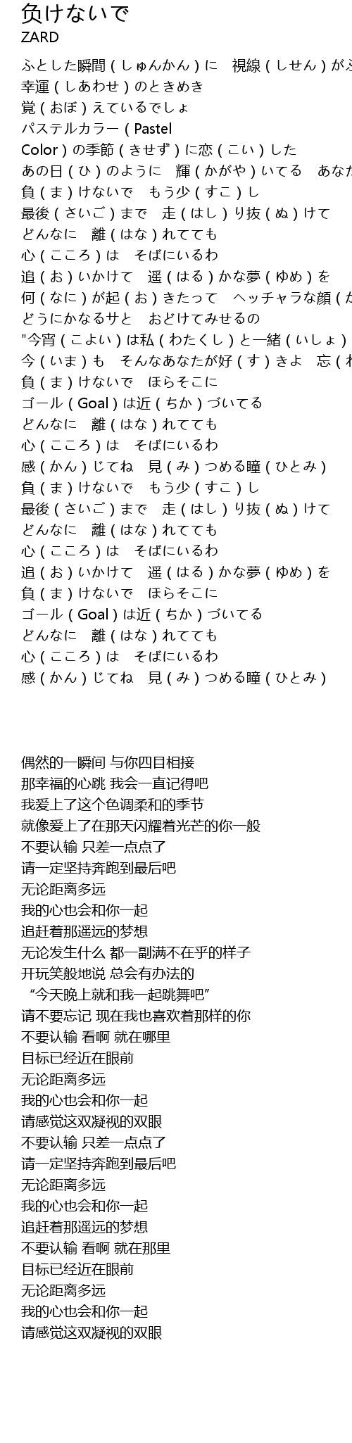 | [00:54.85] | 負(ま)けないで もう少(すこ)し |