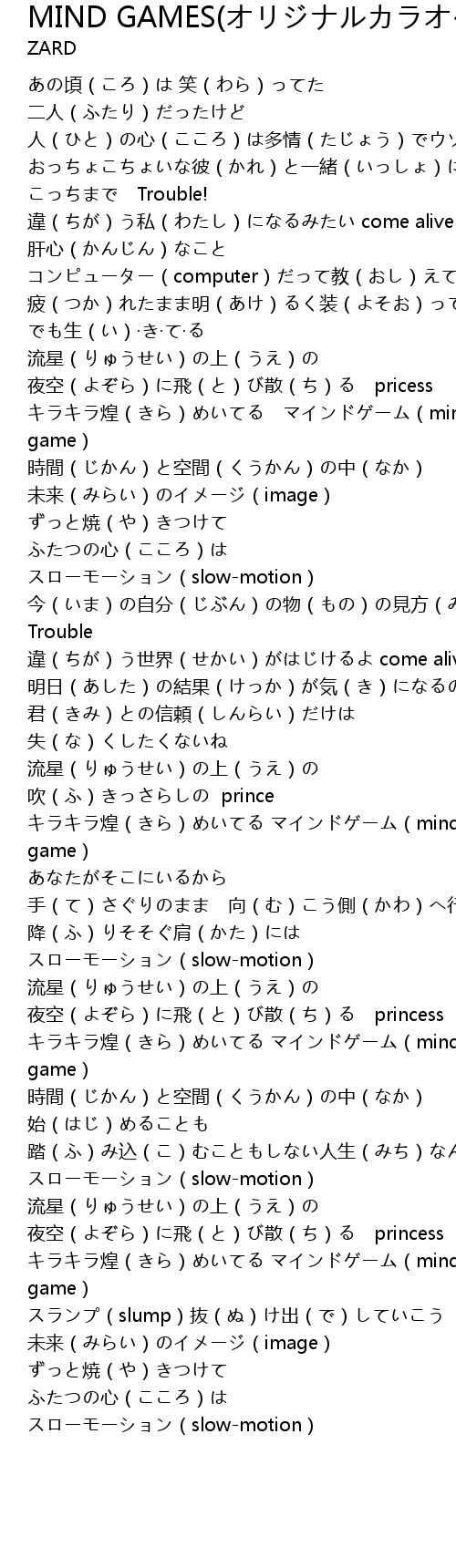 | [02:34.89] | キラキラ煌(きら)めいてる マインドゲーム(mind game) |