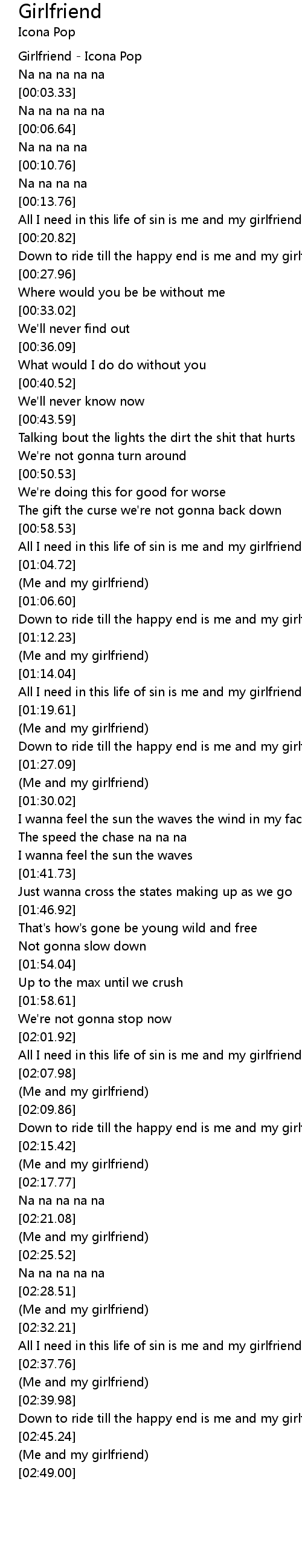 [00:00.51] Girlfriend - Icona Pop