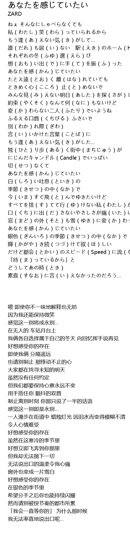 | [01:12.28] | あなたを感(かん)じていたい |