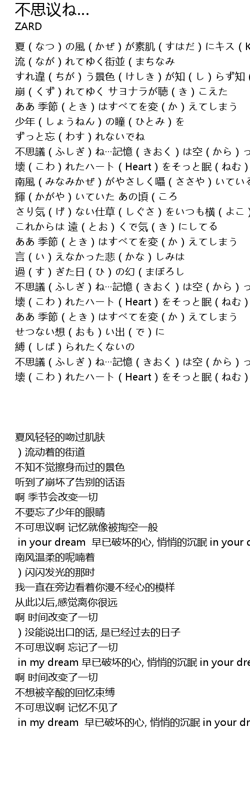 | [03:18.39] | 不思議(ふしぎ)ね···記憶(きおく)は空(から)っぽにして |