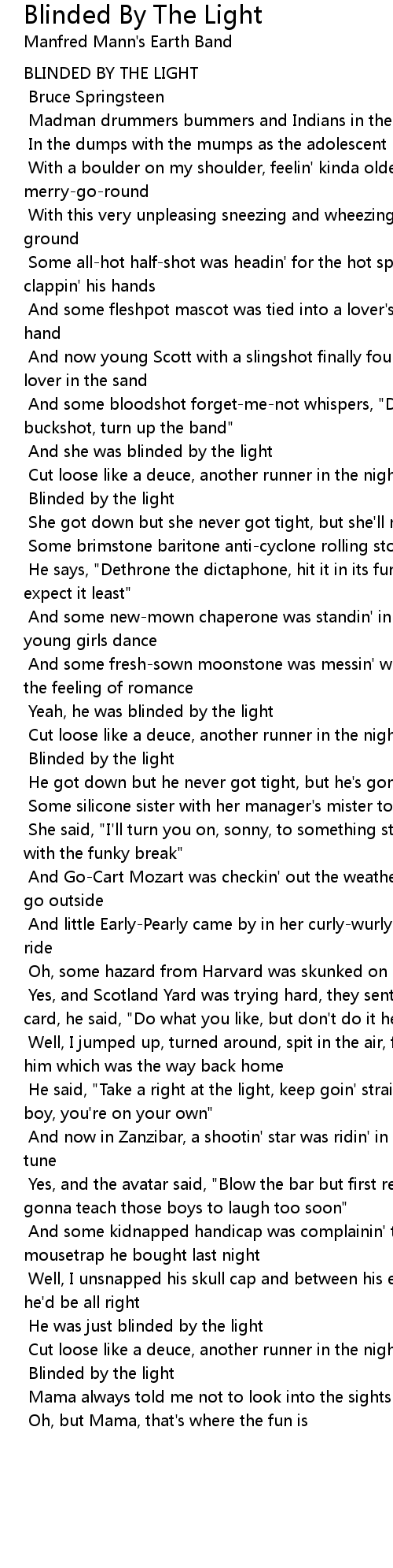 And some bloodshot forget-me-not whispers, "Daddy's within earshot, save the buckshot, turn up the band" |