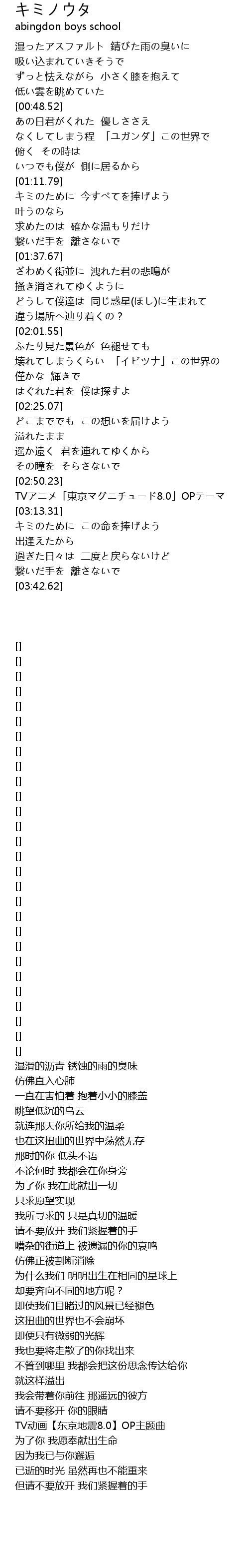 | [02:53.23] | TVアニメ「東京マグニチュード8.0」OPテーマ |
