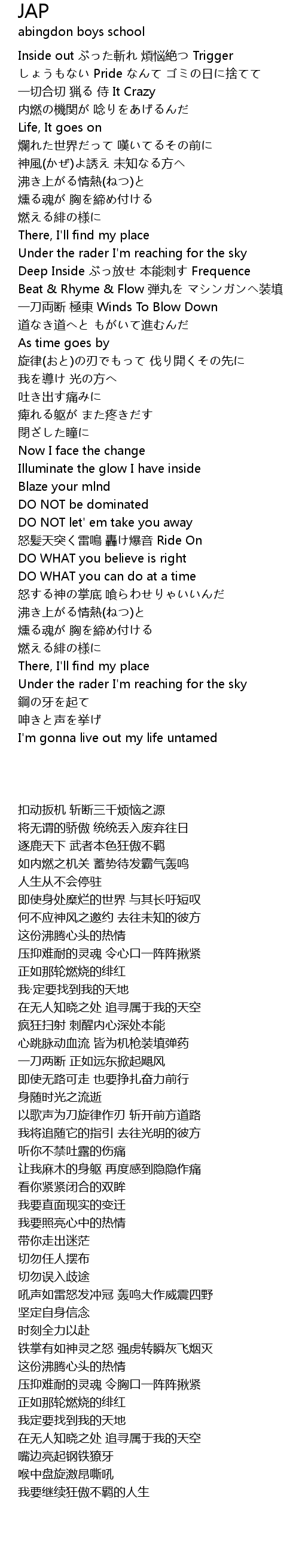 | [00:19.100] | Inside out zhan fan nao jue Trigger |