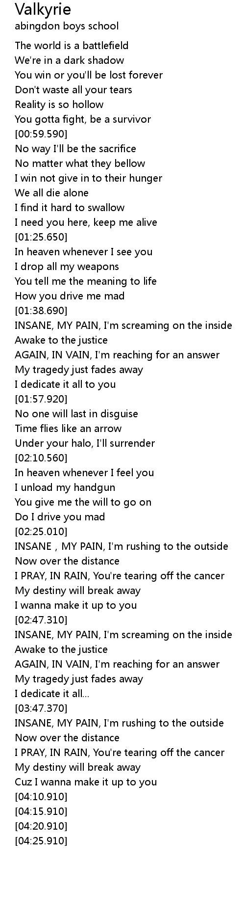 | [00:44.400] | The world is a battlefield |
