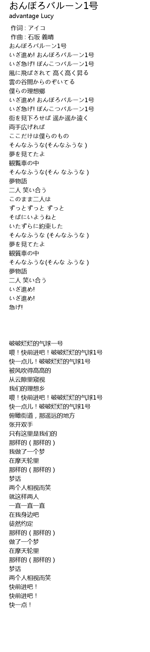 | [01:16.31] | 快一点儿!破破烂烂的气球1号 |