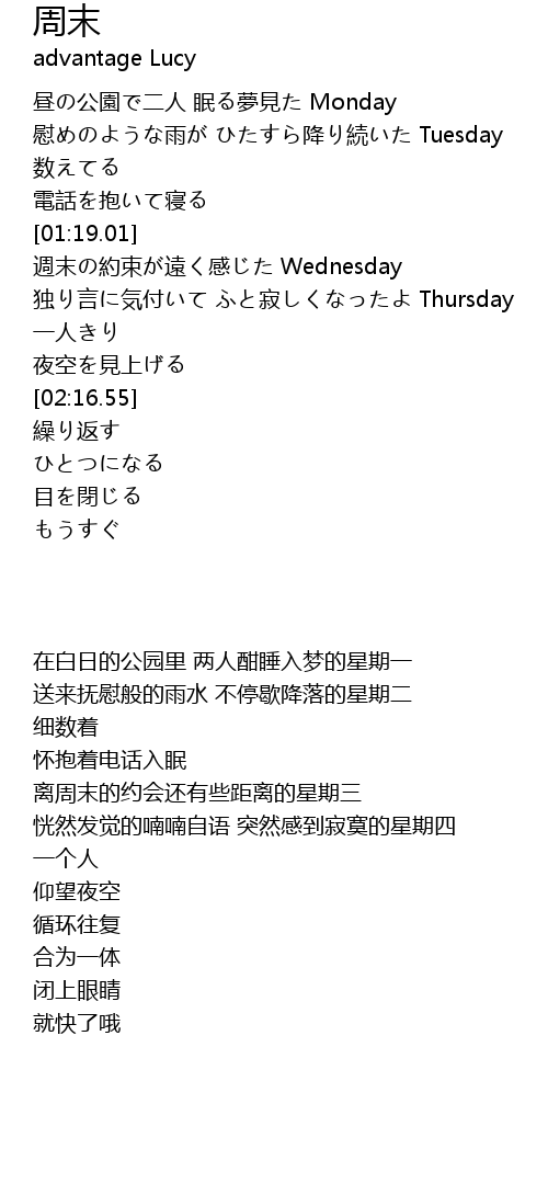 | [01:27.53] | 週末の約束が遠く感じた Wednesday |