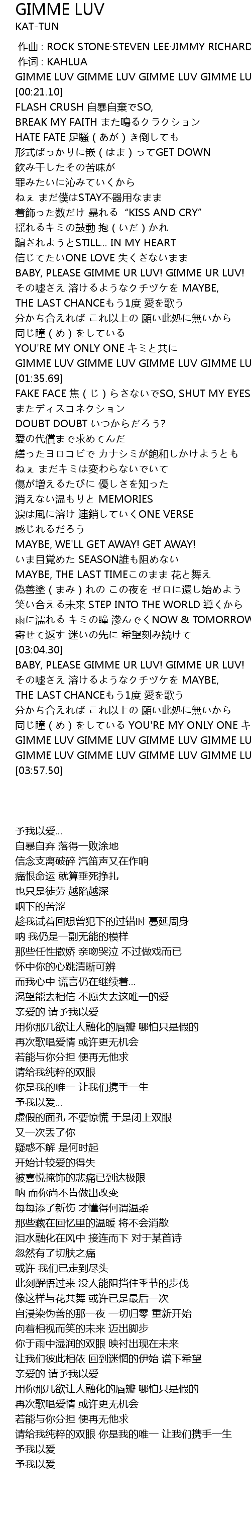 | [03:53.40] | GIMME LUV GIMME LUV GIMME LUV GIMME LUV |