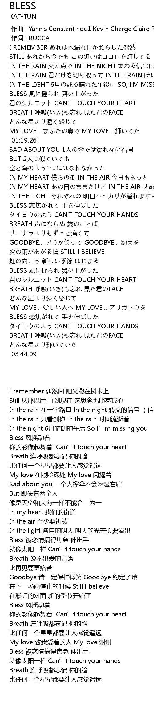 | [01:55.44] | Bless 被恋情搞得焦急 伸出手 |