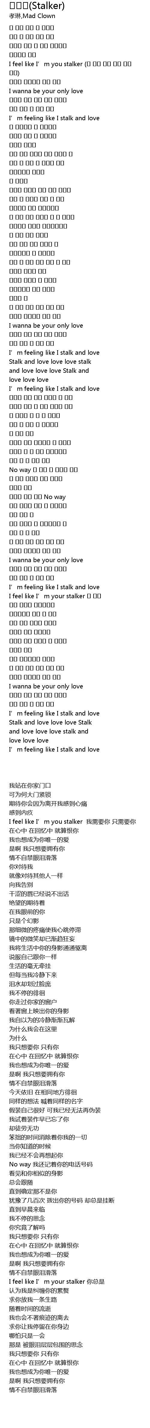 | [00:11.600] | I feel like I’m you stalker 我需要你 只需要你 |