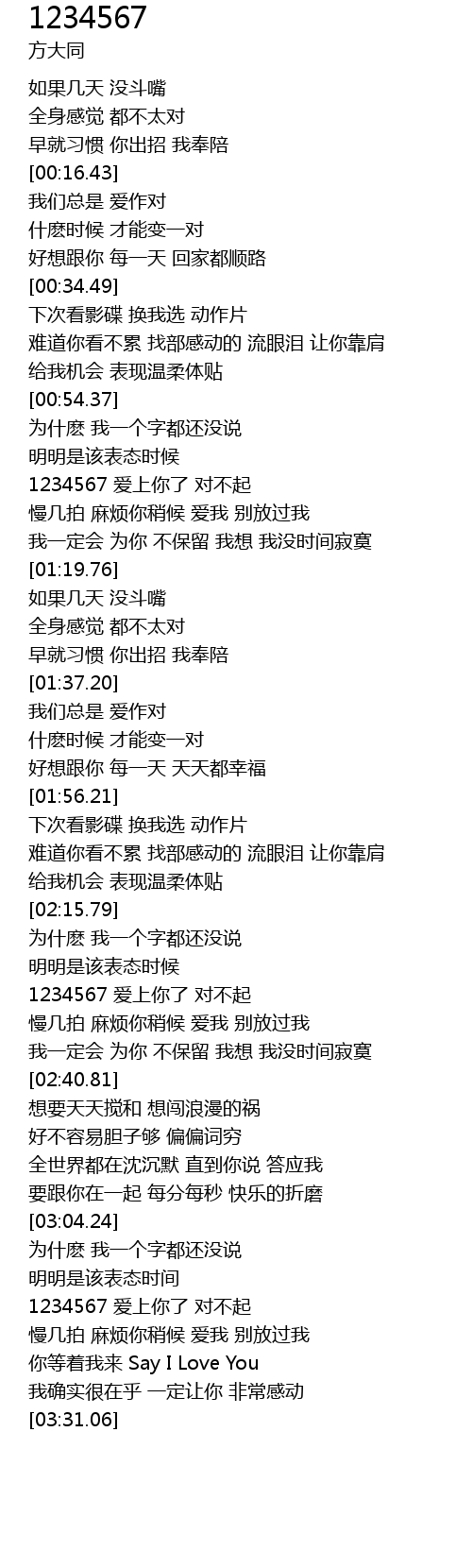 | [03:11.98] | 1234567 爱上你了 对不起 |