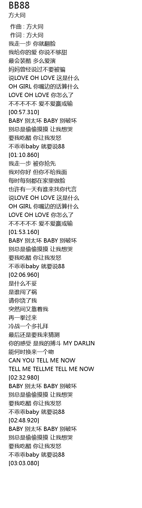 | [03:00.740] | 不乖乖baby 就要说88 |