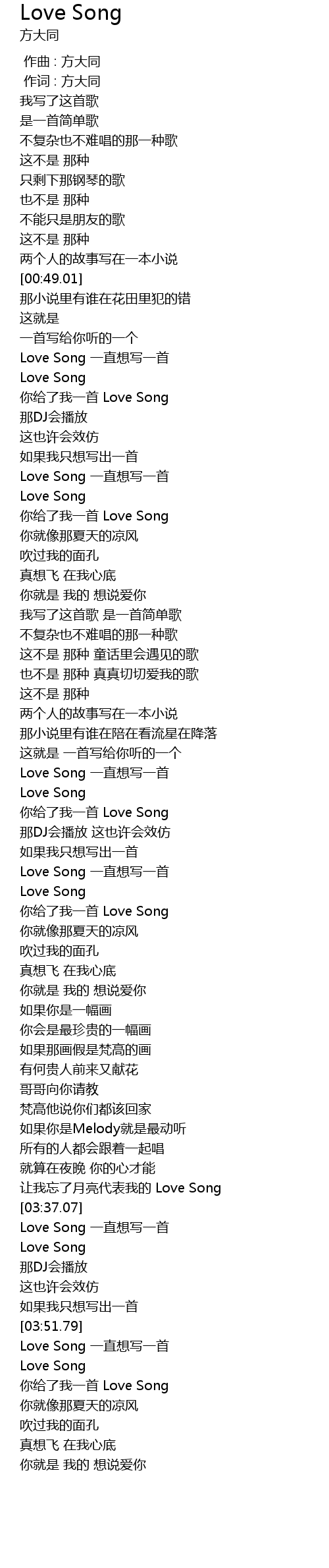 | [02:42.49] | nǐ gěi le wǒ yī shǒu Love Song |
