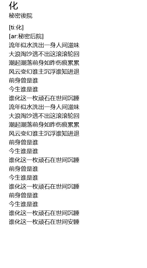 | [04:42.277] | 谁化这一枚顽石在世间沉睡 |