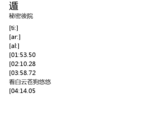 | [04:29.44][03:58.72][02:26.19] | 于乌何有之乡 逍遥一游 看白云苍狗悠悠 |