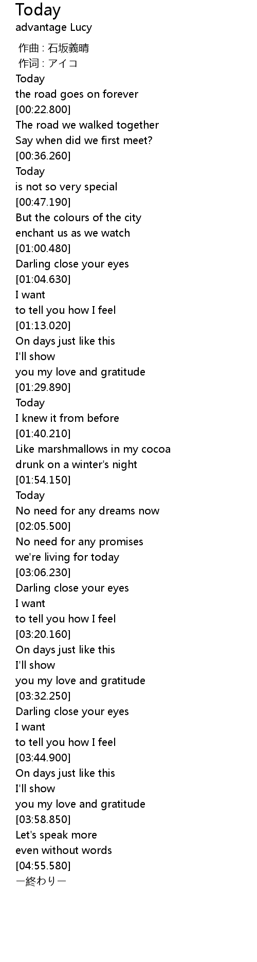 | [01:30.250] | Today |