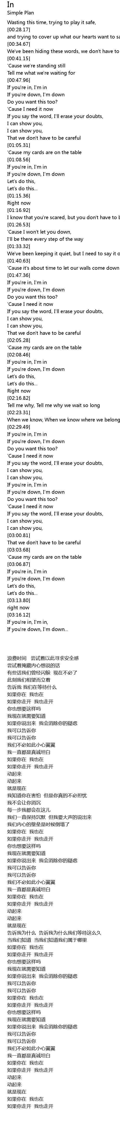 If you're in, I'm in, |