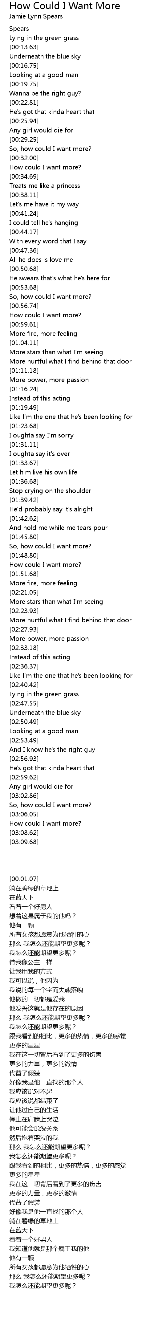 How could I want more? |