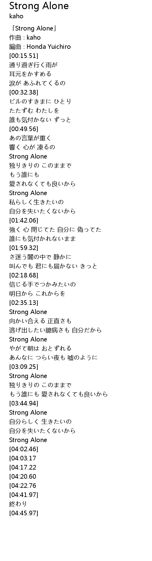 | [04:38.10][04:20.60] | Strong Alone |