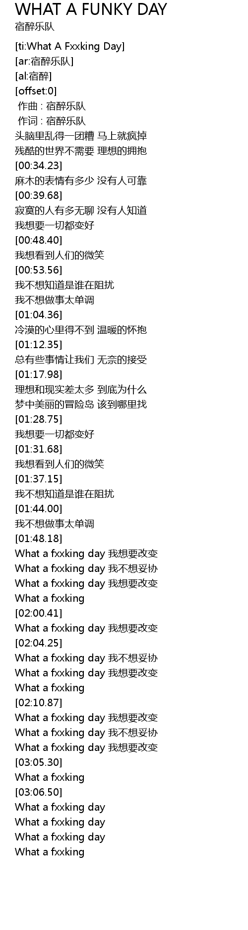 | [03:02.58] | What a fxxking day 我想要改变 |