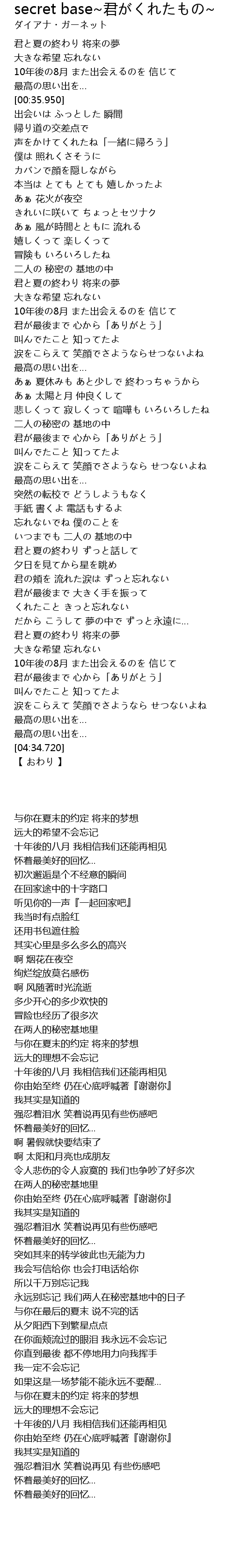 | [03:20.830] | 永远别忘记 我们两人在秘密基地中的日子 |