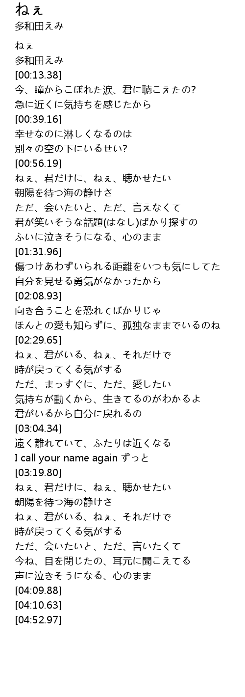 | [03:33.35] | ねぇ、君がいる、ねぇ、それだけで |