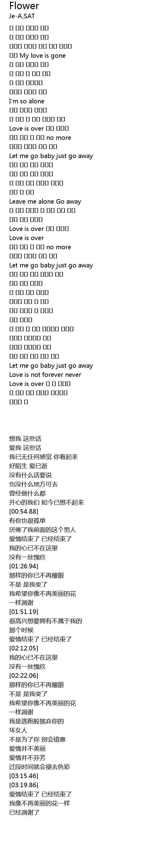 | [03:15.46] | Let me go baby just go away |