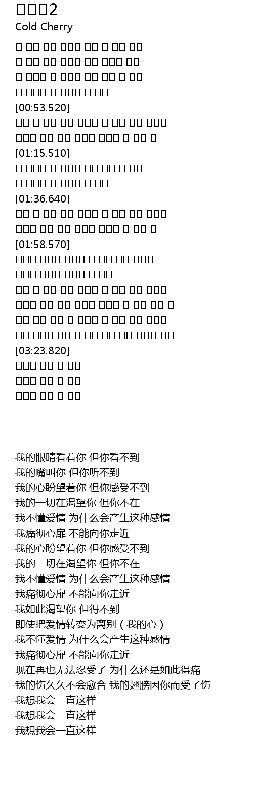 | [03:01.590] | 现在再也无法忍受了 为什么还是如此得痛 |