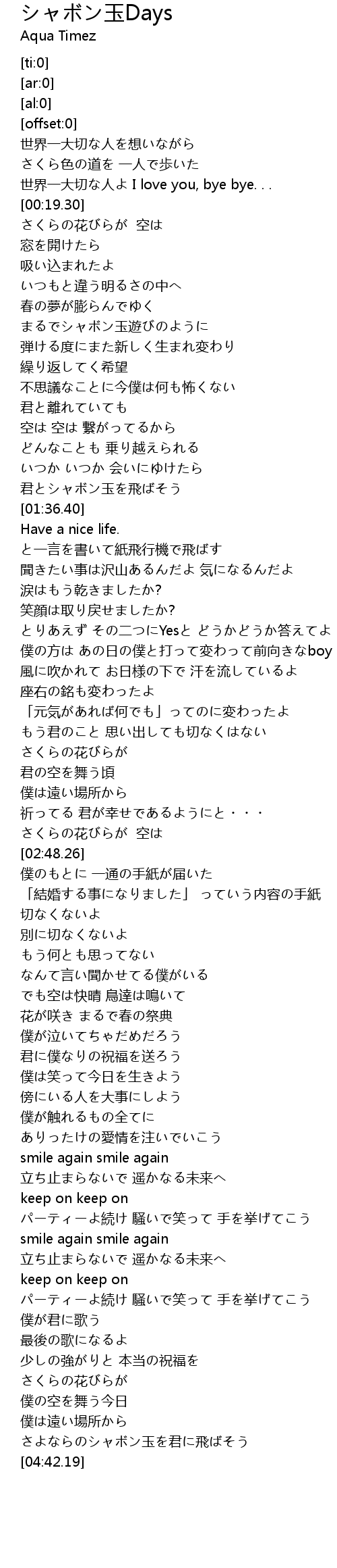 | [01:32.62] | 君とシャボン玉を飛ばそう |