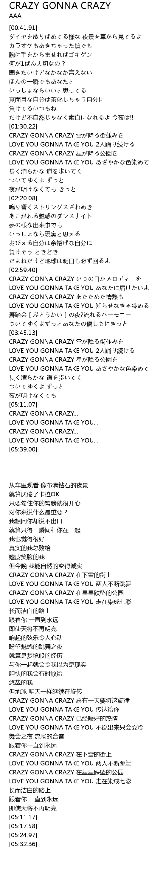 | [03:13.86] | CRAZY GONNA CRAZY qíng rè |